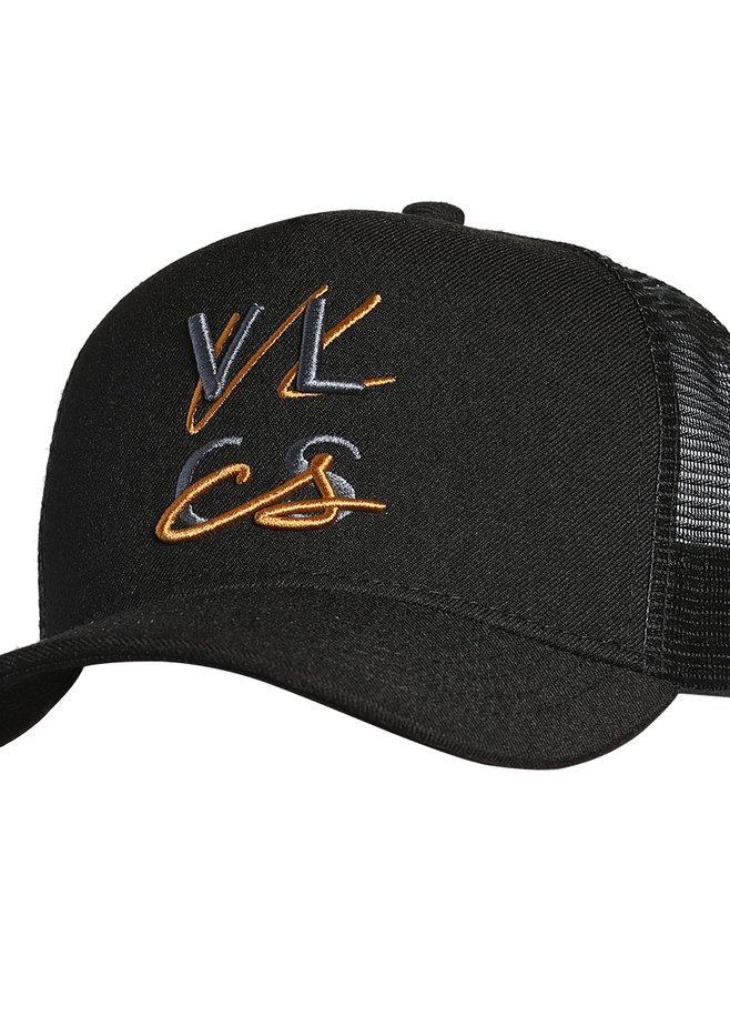 O Boné VLCS Encosta apresenta um visual marcante com logo bordado em alto relevo, combinando fios nas cores laranja queimado e cinza, que adicionam modernidade ao preto sólido da base. O design frontal transmite atitude e autenticidade, ideal para quem busca estilo com personalidade.